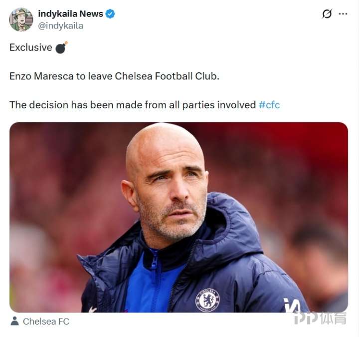 转会记者“绿帽哥”indykaila爆料独家消息,称切尔西主帅马雷斯卡已经确认下课。