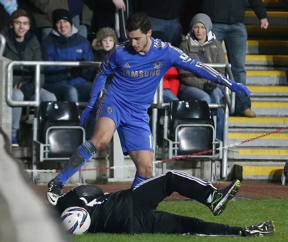 该事件发生在切尔西对阵斯旺西城的比赛中,比赛地点为自由球场。当时斯旺西距离晋级决赛仅剩10分钟,摩根拒绝将球交给切尔西以拖延时间,阿扎尔情绪失控踢向这名当时年仅17岁的球童,并因此被直接出示红牌。斯旺西最终守住优势,晋级决赛,并在温布利以5-0击败布拉德福德城夺冠。摩根此后也进入饮品行业,成为一名身价约4000万英镑的企业家。在近期的一组照片中,这位前球童与阿扎尔以朋友身份重聚,两人一同手持摩根的酒类品牌产品合影。