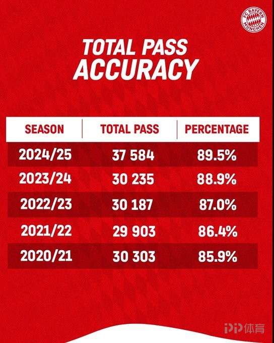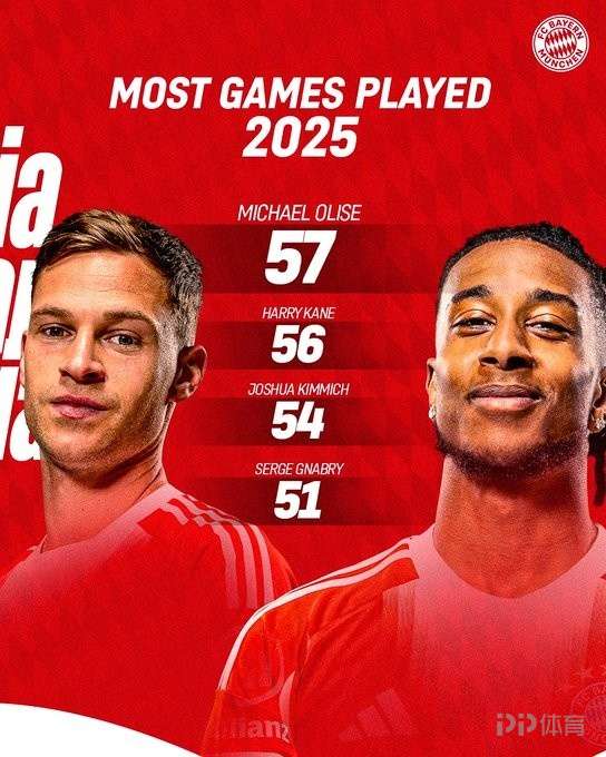 2025年即将结束,拜仁俱乐部官方也回顾总结了多项年度数据: