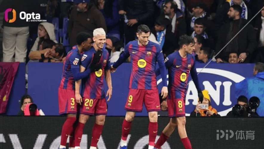 西甲第18轮,巴塞罗那客场2-0战胜西班牙人。