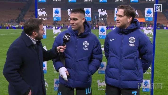 意甲联赛第18轮,国际米兰主场3-1战胜博洛尼亚。赛后,国米球员劳塔罗与杰林斯基一起接受了意甲官方转播商DAZN的采访。